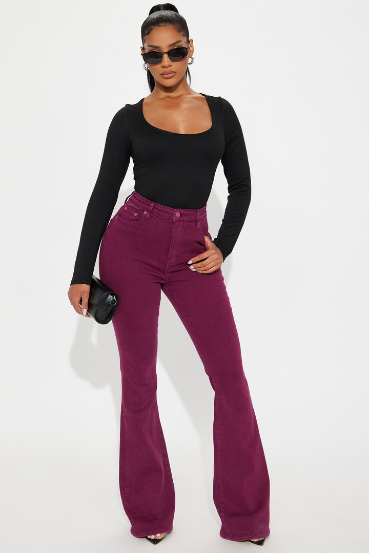 Available In Black, Brown, Burgundy, Camel, Off White, Red And Sage. | Basic Bodysuit | Scoop Neck | Long Sleeve | DTY/Yummy | Double Lined | Stretch | Final Sale | 92% Polyester 8% Spandex | Imported
