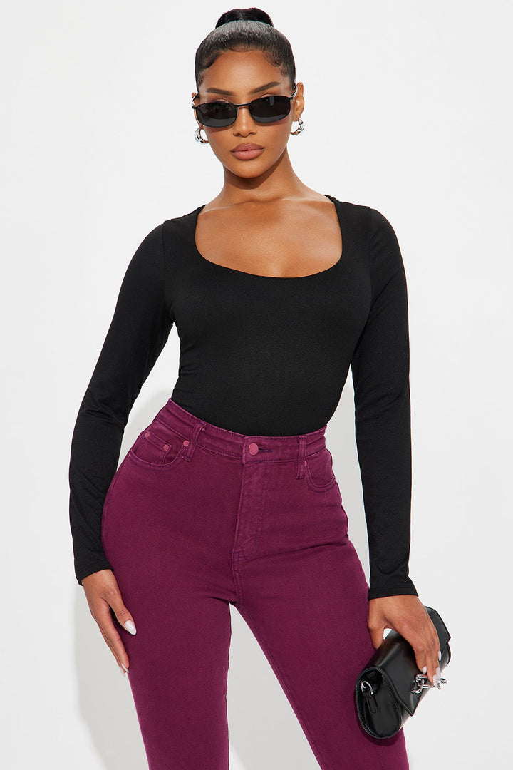 Esme Scoop Neck Double Lined Long Sleeve Bodysuit - Black