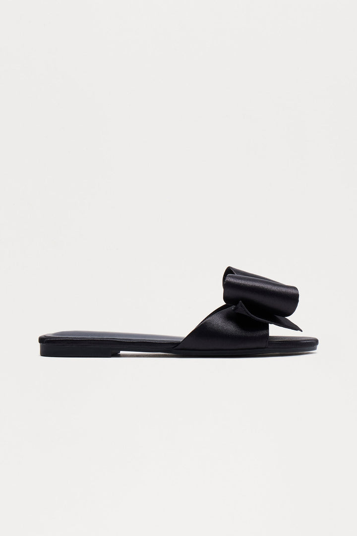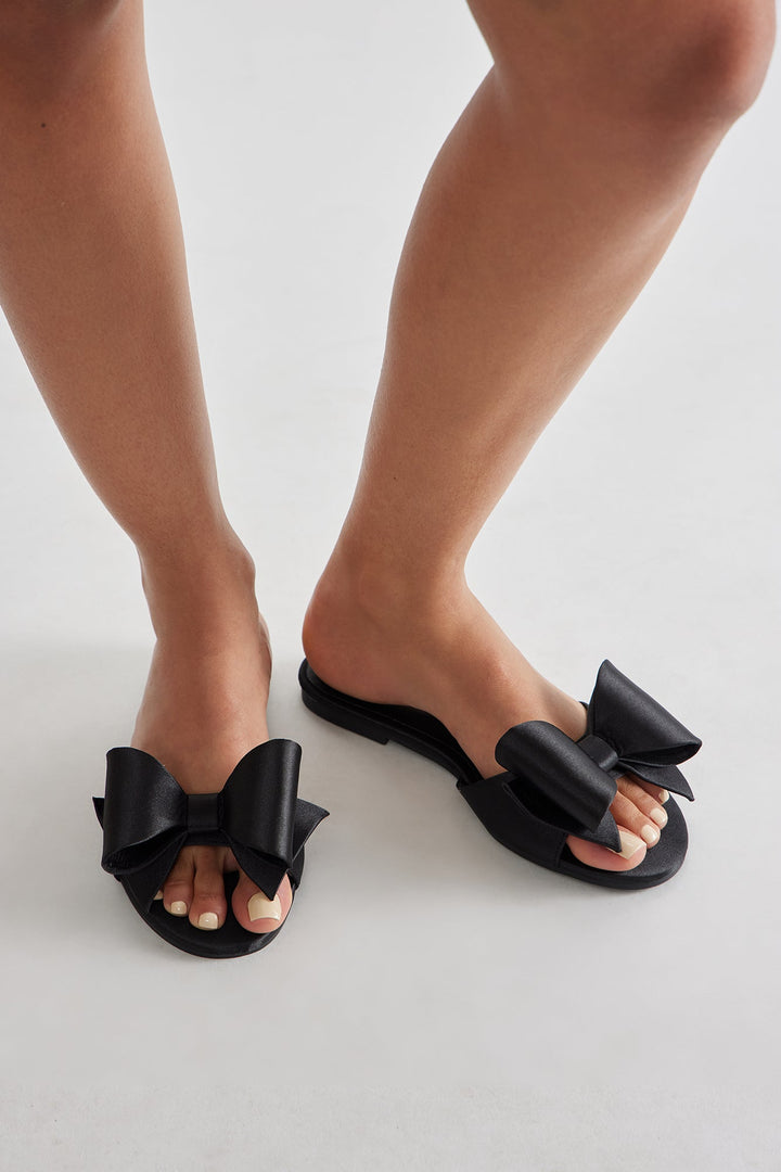 Ethel Bow Satin Sandals - Black