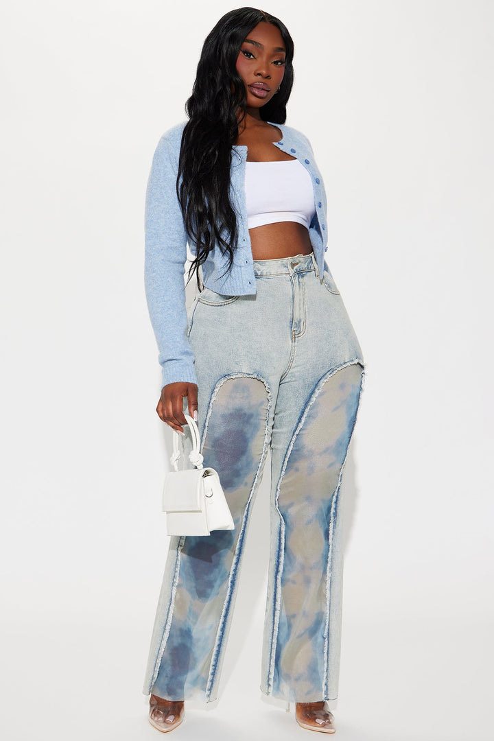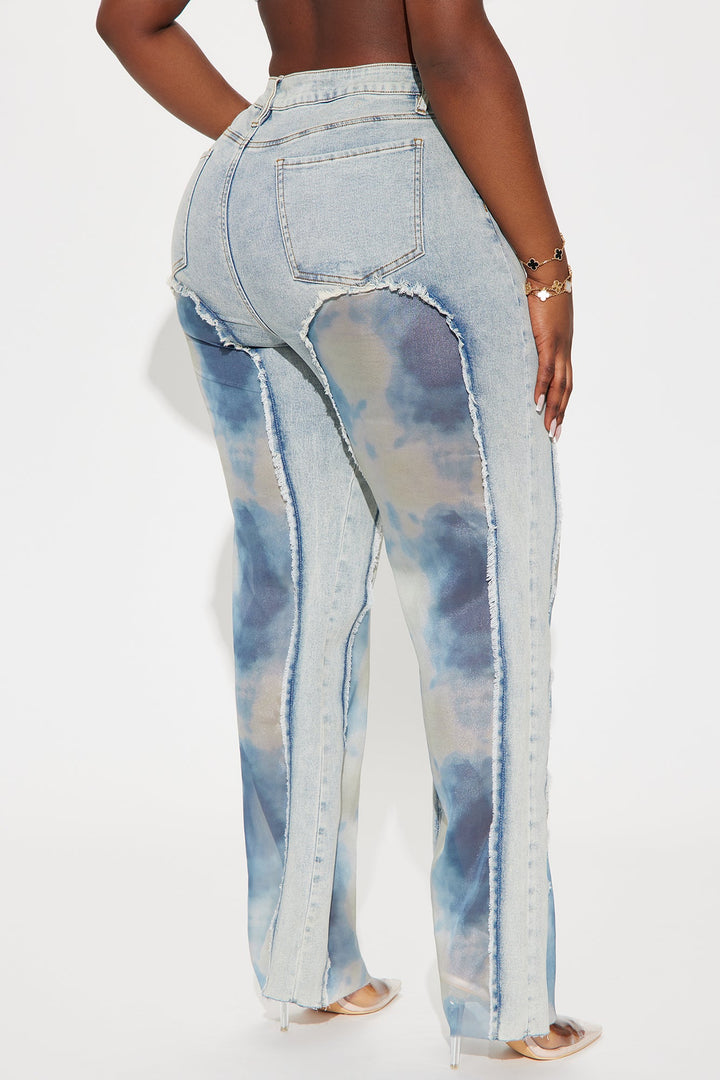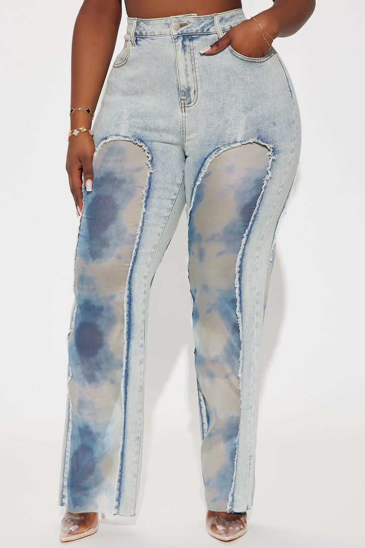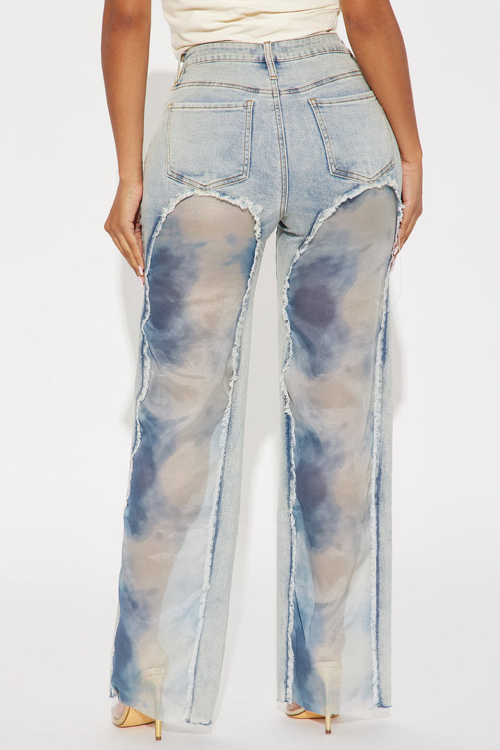 Evelynn Tie Dye Stretch Wide Leg Jeans - Light Wash