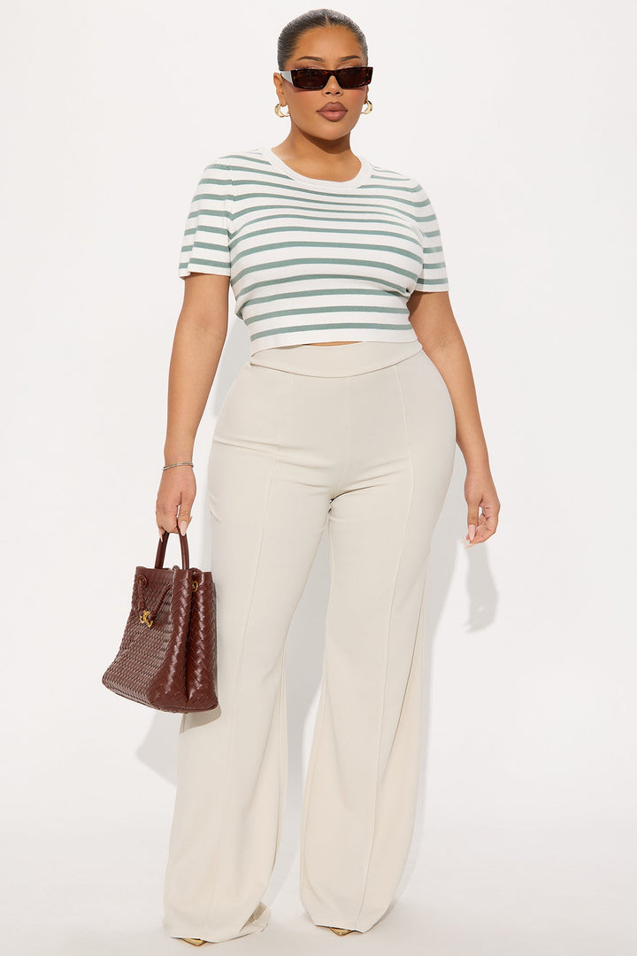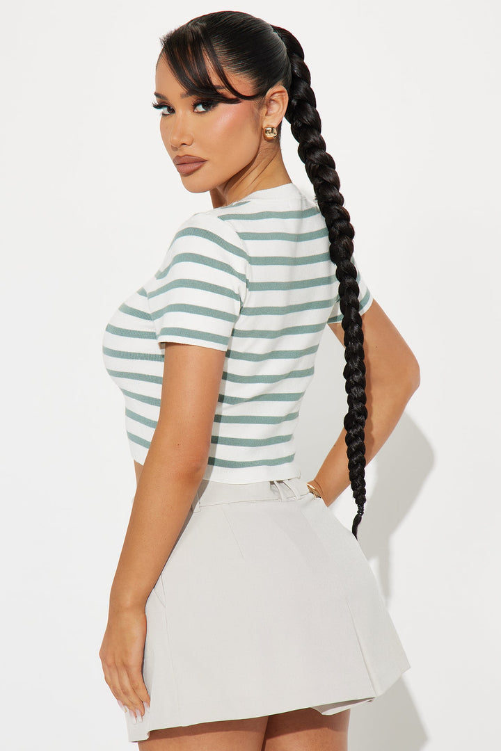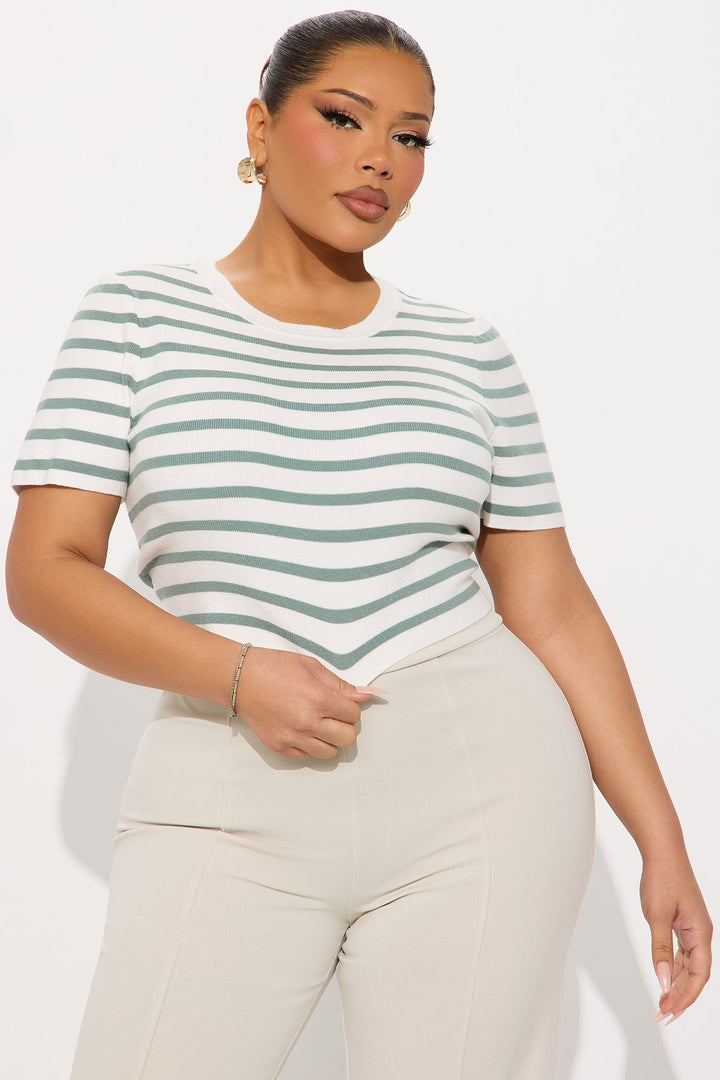 Available In Black/combo, Sage/combo And Taupe/combo. | Striped Sweater Top | Crew Neck | Short Sleeve | Self: 50% Viscose 28% Polyester 22% Nylon | Imported