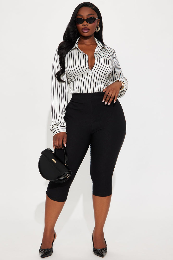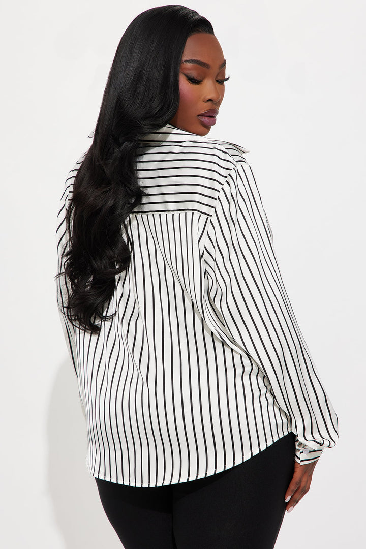 Fast Lane Striped Satin Shirt - Ivory/combo
