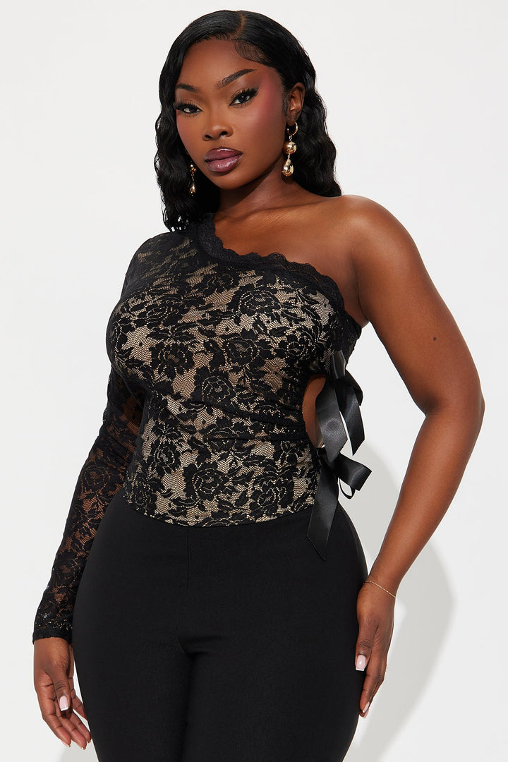 Fearless Grace Lace One Shoulder Top - Black