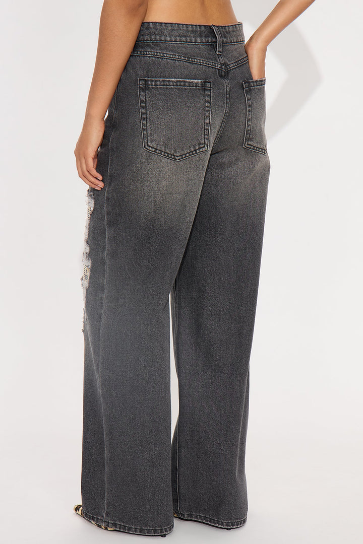 Fearless Leopard Distressed Wide Leg Jeans - Grey