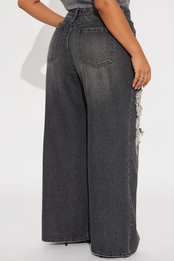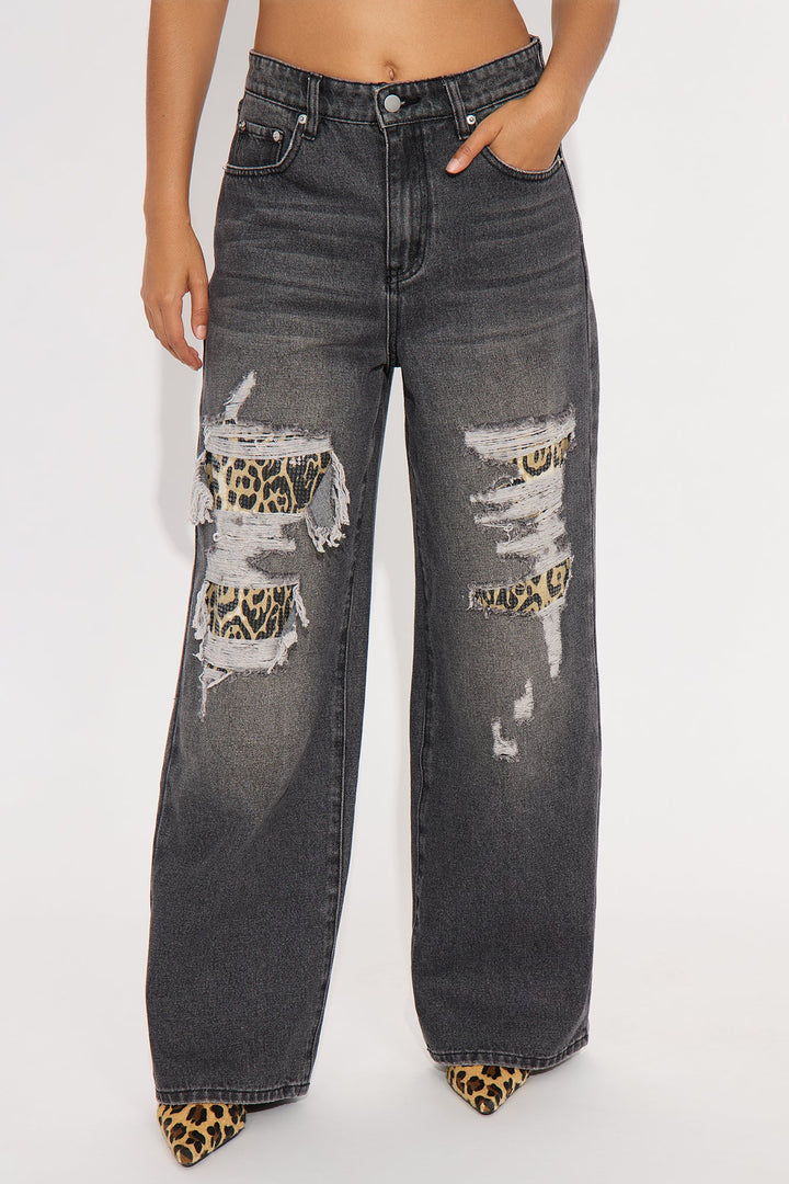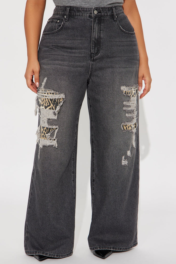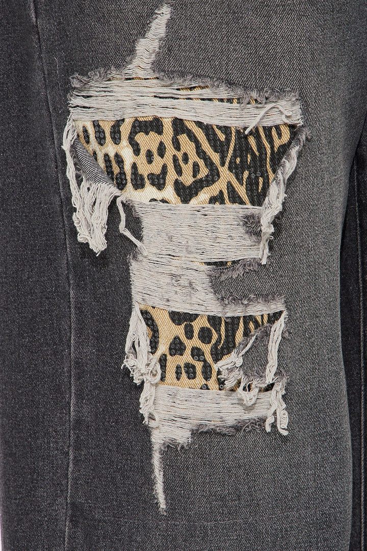 Fearless Leopard Distressed Wide Leg Jeans - Grey
