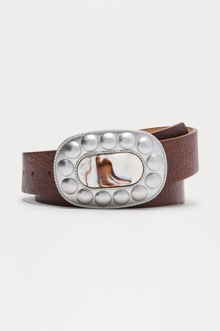 Available In Black And Brown. | Faux Leather Material | Intricate Buckle Design | Hardware Detail | Length: 41" | Self: 80% Polyurethane 20% Alloy | Imported