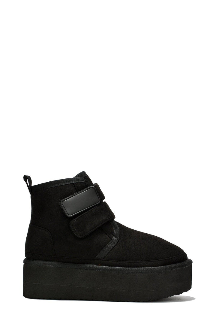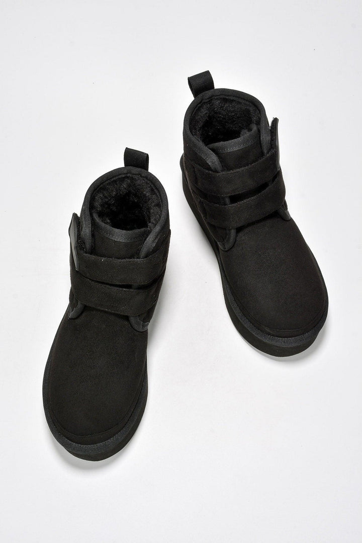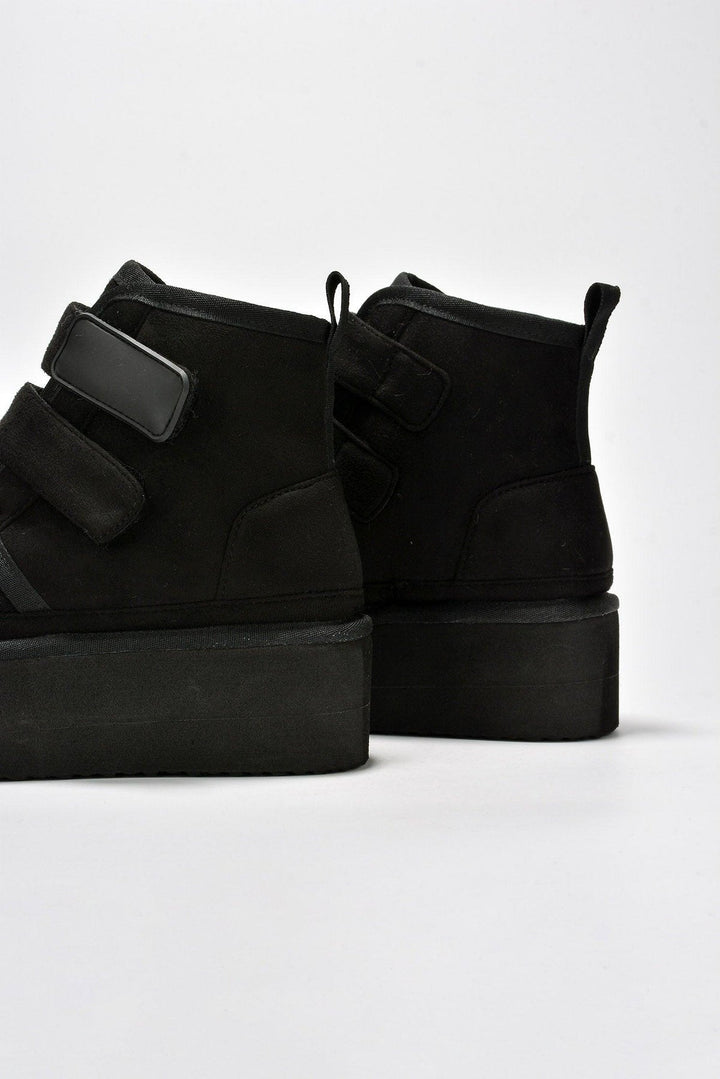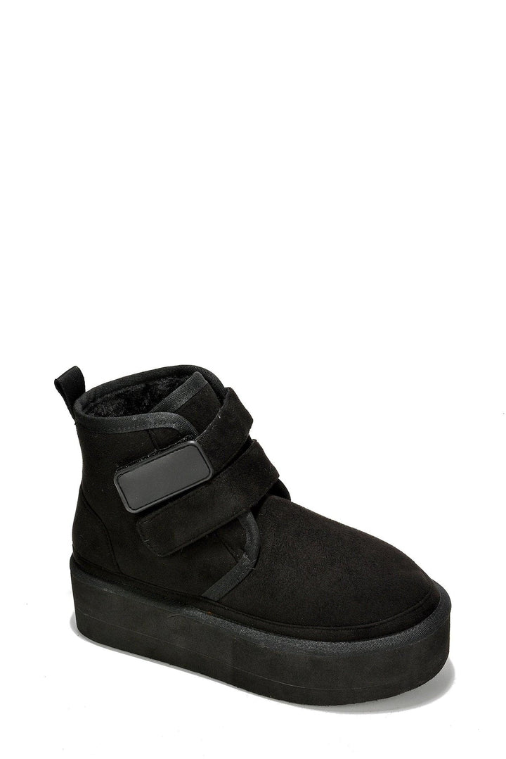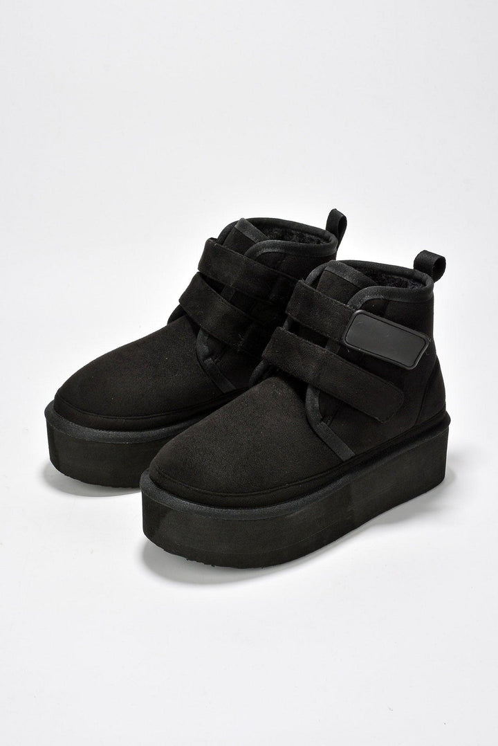 FELIA - BLACK - BOOTIES by CAPE ROBBIN round toe fur-lined double velcro straps lug sole platform suede finish ankle booties Slide into these ultra-comfy Felia ankle booties and start walking on Cloud 9. The double velcro straps are the icing on the cake. Enjoy them in black,camel,gray,khaki,and olive.