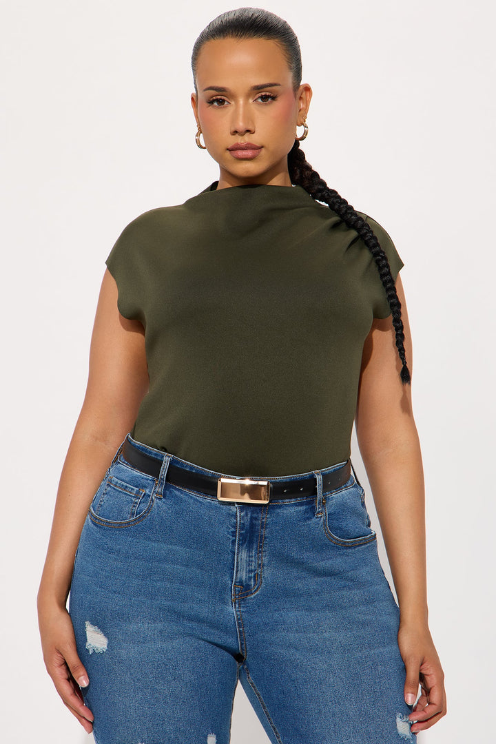 Fern Short Sleeve Mock Neck Bodysuit - Olive