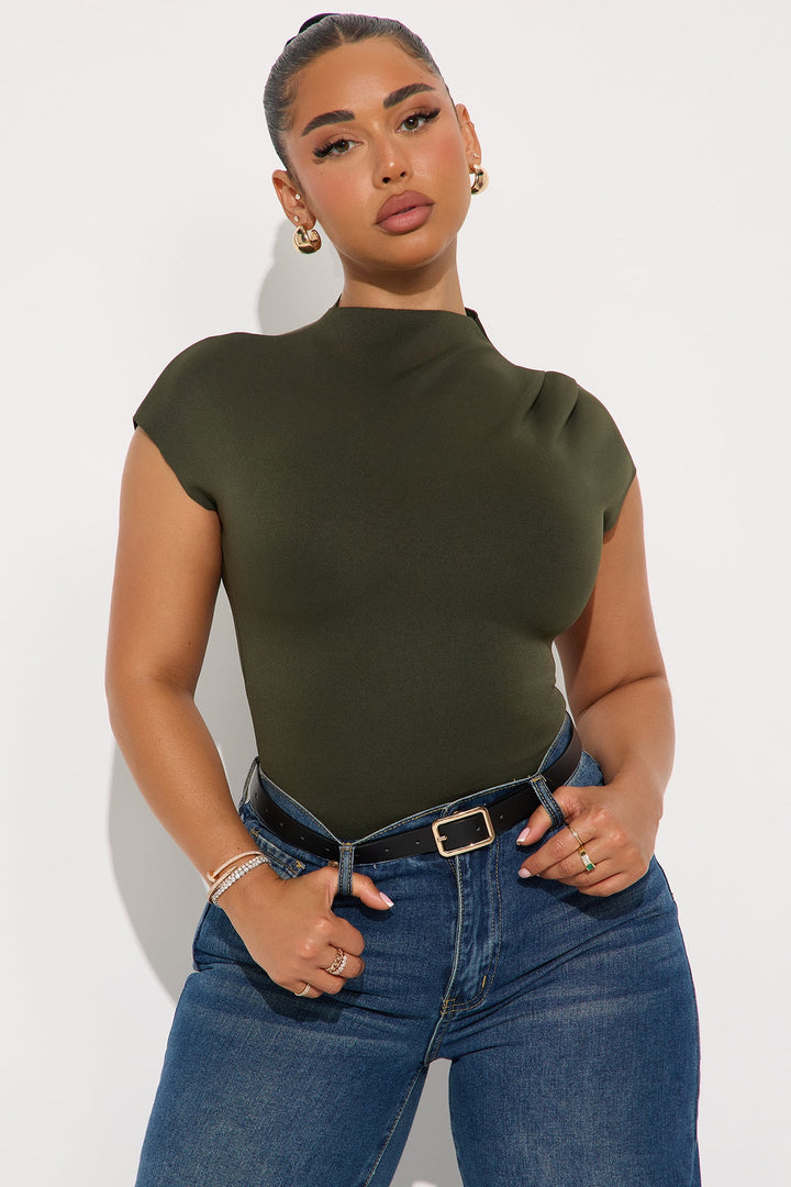 Fern Short Sleeve Mock Neck Bodysuit - Olive