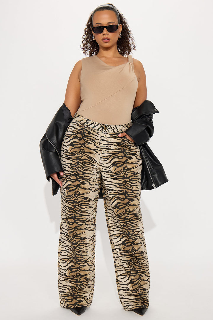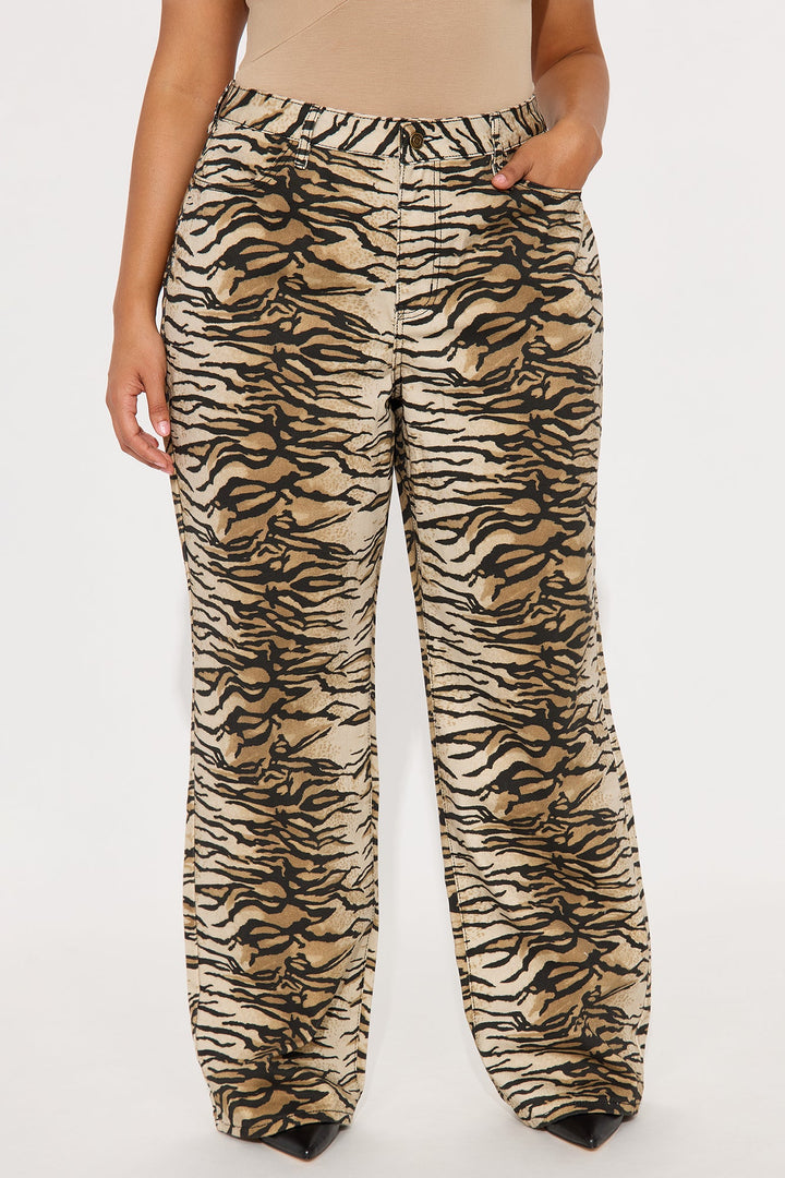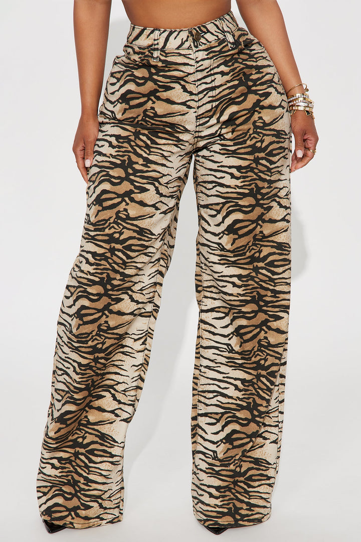 Available In Brown/combo. | Wide Leg Jean | Front Pockets | Animal Print | 11" Rise | 33" Inseam | Non Stretch | Disclaimer: Pattern Placement May Vary | 100% Cotton | Imported