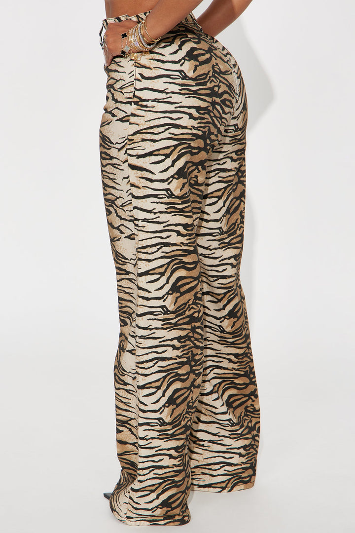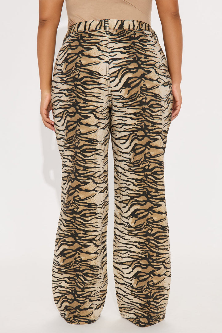 Fierce And Feisty Printed Wide Leg Jeans - Brown/combo