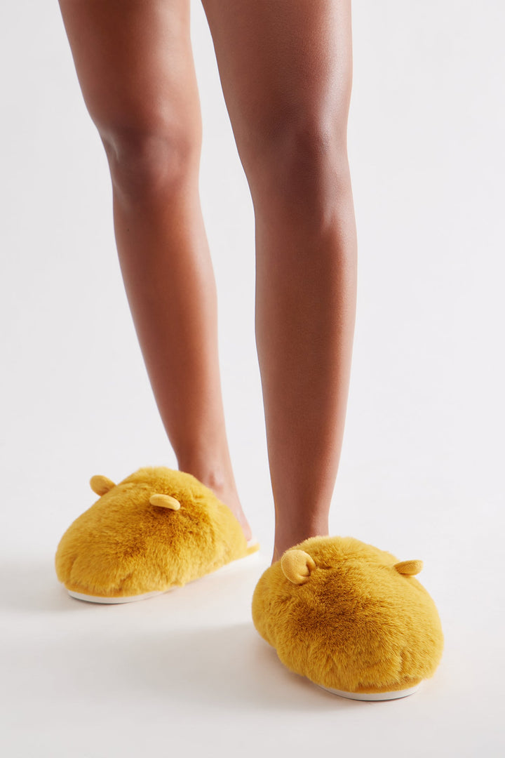 Fifi Faux Fur Slippers - Mustard