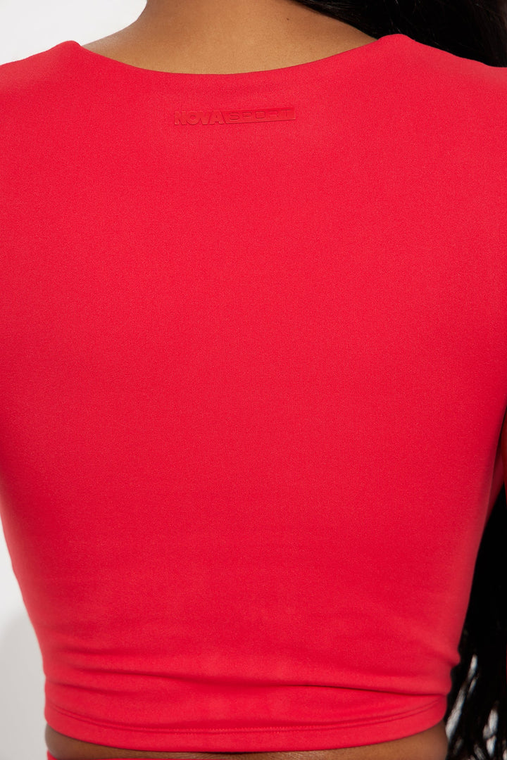 Available In Red. | Active Top | Super Soft | Sleeveless | Square Neck | Corset Detail | Padded | Medium Impact | Pair with "First Position Super Soft Active Pant" | Body: 77% Polyester 23% Spandex | Inner Mesh: 82% Nylon 18% Spandex | Imported