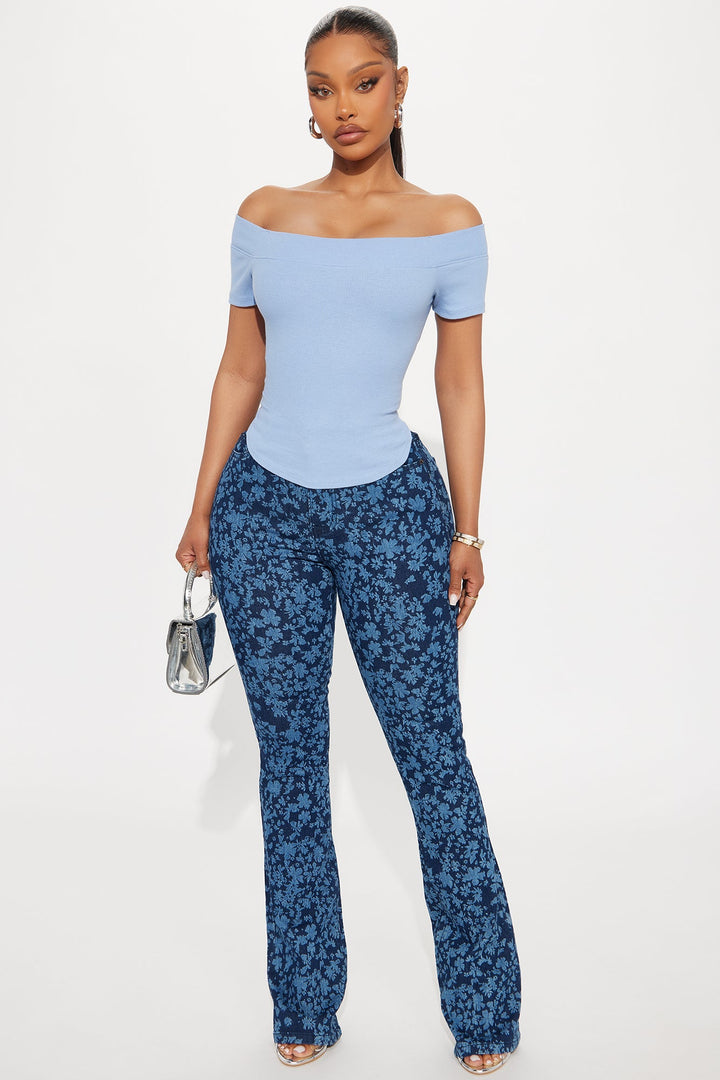 Flo Off Shoulder Ribbed Top - Blue