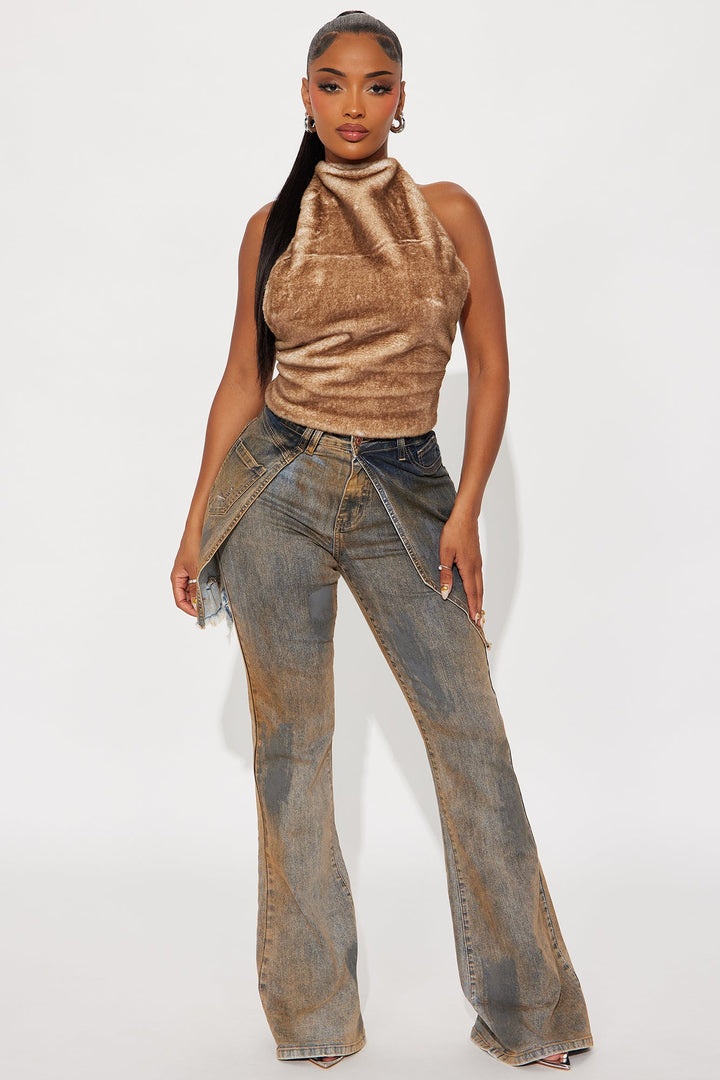 Available In Brown And Pink. | Halter Top | Faux Fur | High Neck | Neck Belt Closure | Back Belted Detail | Non Stretch | 100% Polyester | Imported