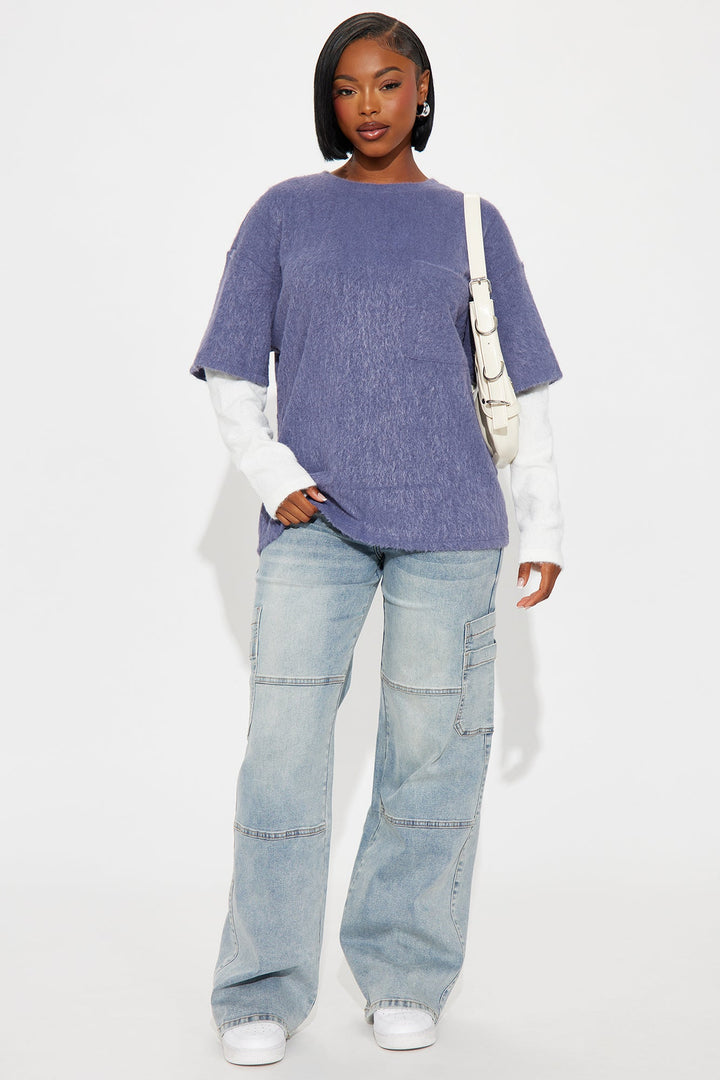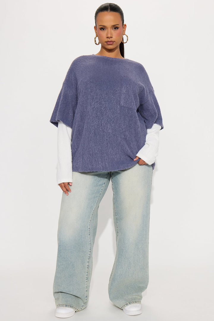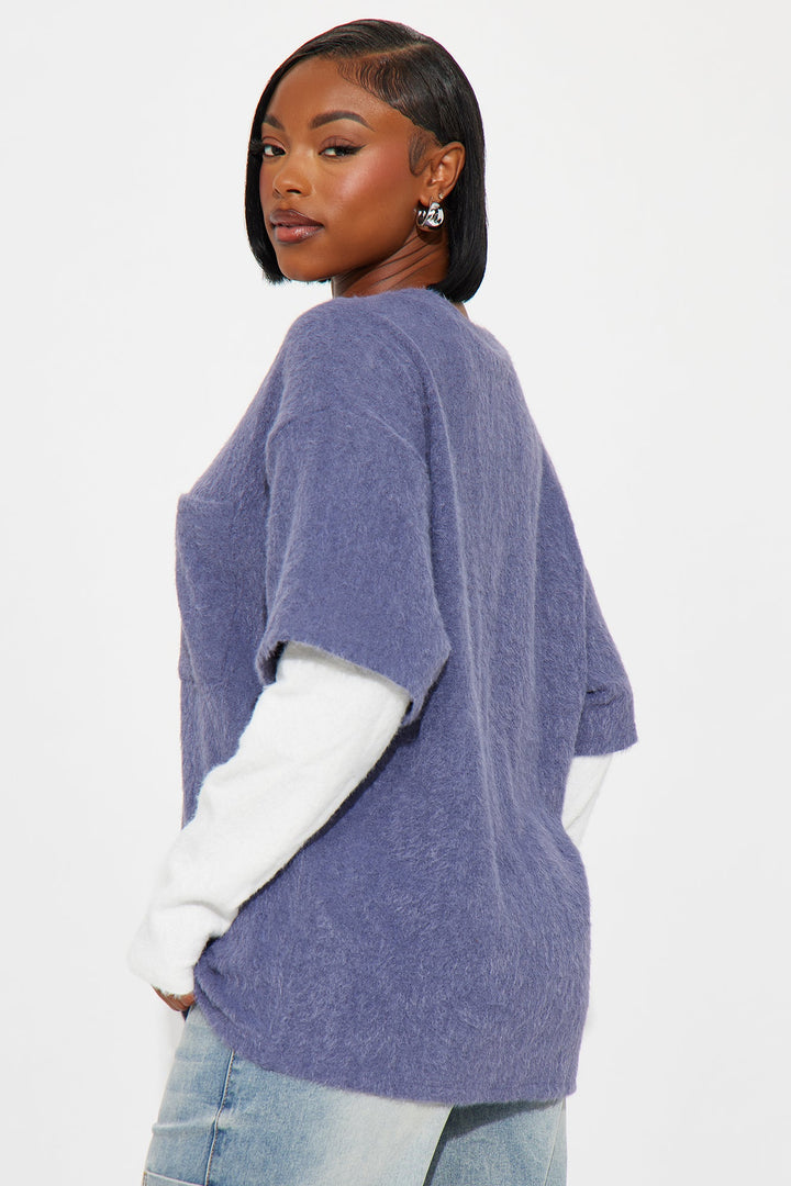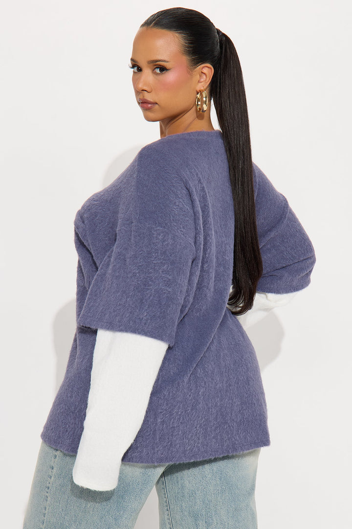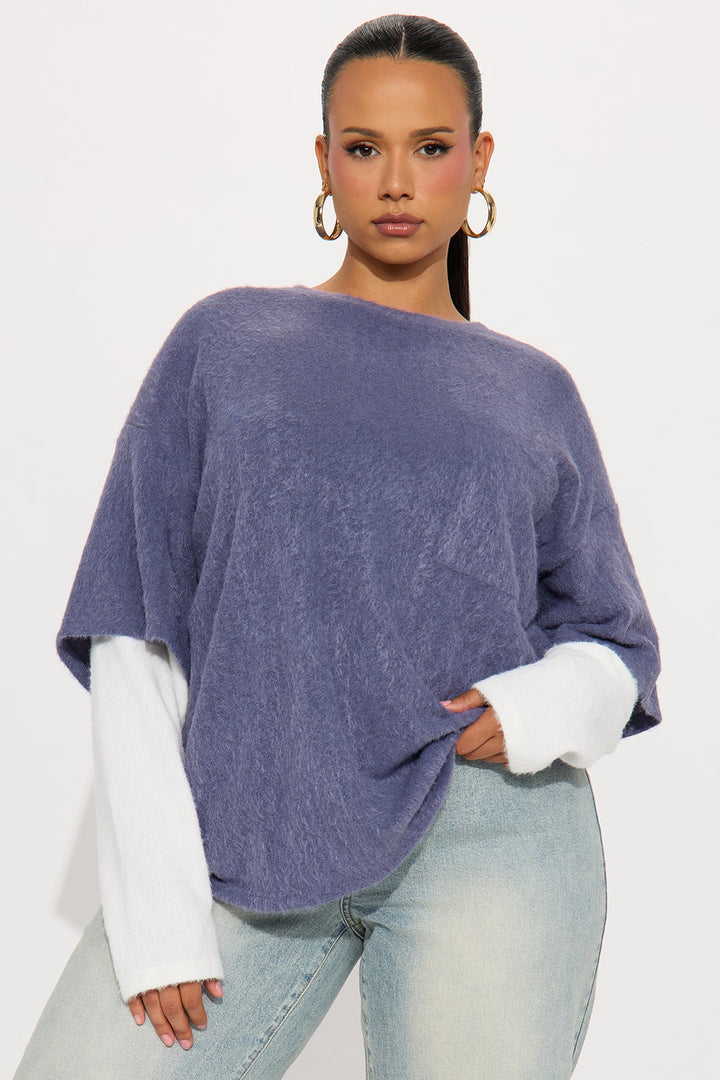 For The Thrill Layered Fuzzy Sweater - Navy/combo