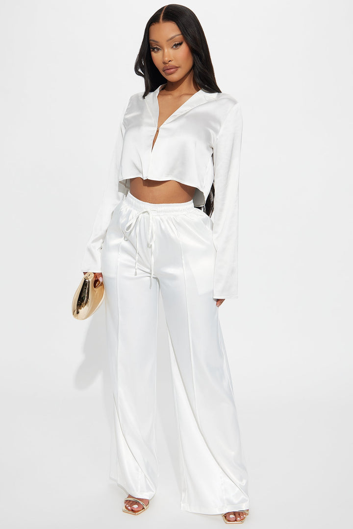 Available In Black And White. | Satin Blouse | Cropped | Hook And Eye Closure | Non Stretch | 95% Polyester 5% Spandex | Imported