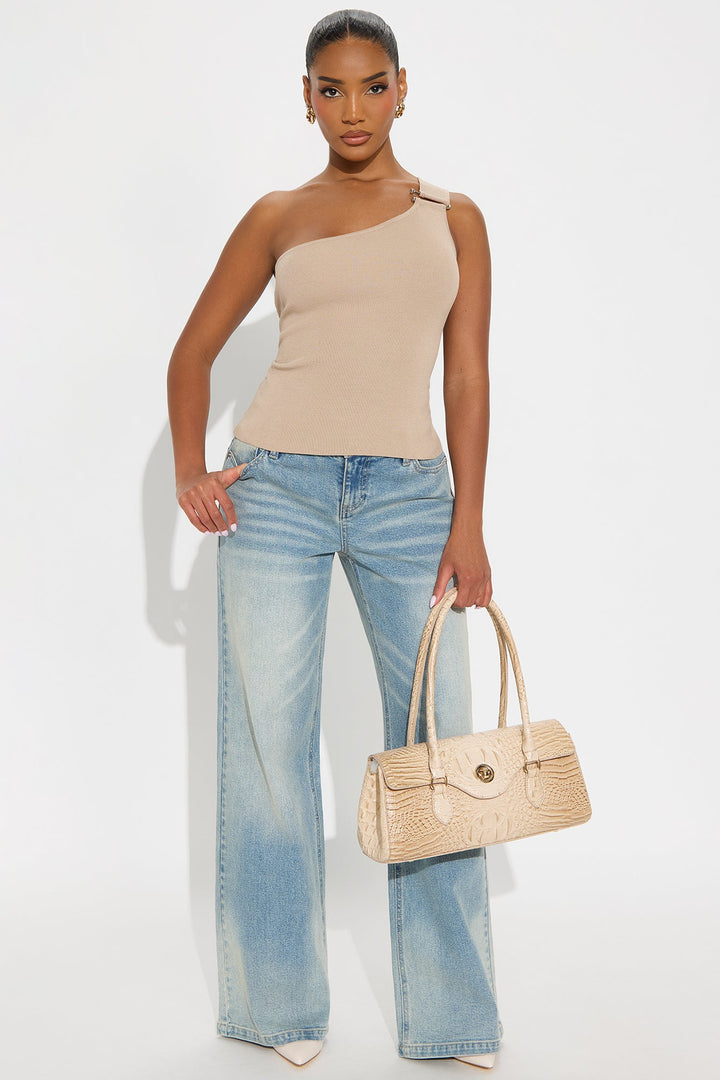 Available In Taupe. | Pullover Sweater | One Shoulder | Hardware Detail | Self : 80% Rayon , 20% Nylon | Imported