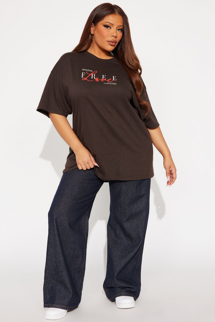 Free Love Multi Hit Oversized Tee - Brown