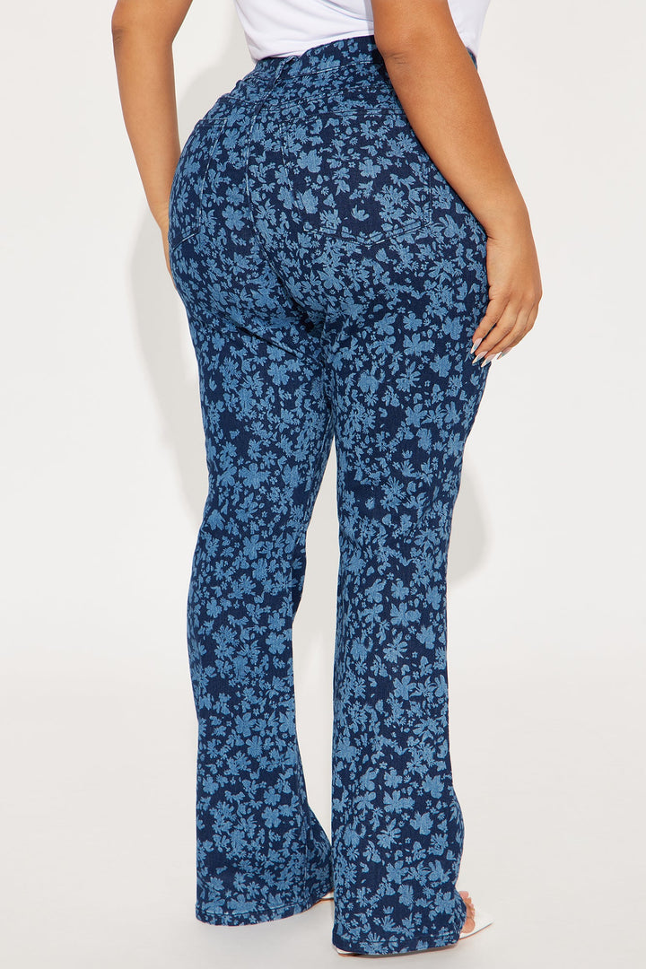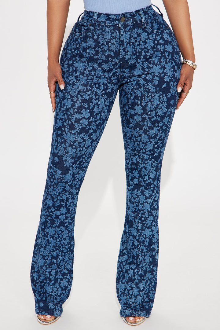 Available In Dark Wash. | Bootcut Jean | 5 Pocket | Floral Print | 11" High Rise | 34" Inseam | 68% Cotton 26% Polyester 4% Rayon 2% Spandex | High Stretch | Imported