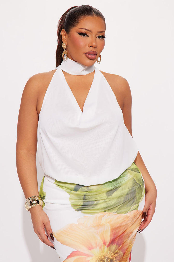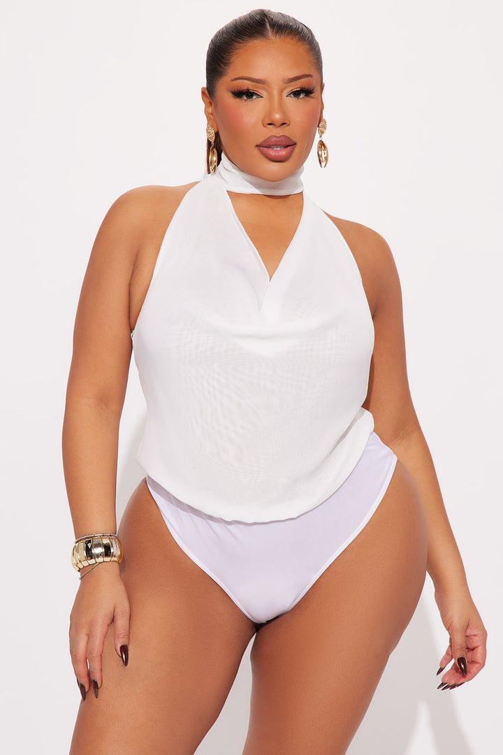 Available In Pink And White. | Cowl Neck Bodysuit | Stretch | Choker Detail | Button Neck Closure | Backless | Draped Detail | Cheeky Bottom | Snap Closure | Final Sale. | Self / Contrast: 100% Polyester | Imported