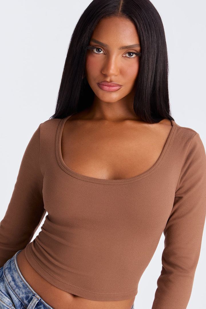 Available In Black, Burgundy, Chestnut, Heather Grey, Military Green, Off White And Taupe. | Basic Top | Scoop Neck | Long Sleeve | DTY/Yummy | Double Lined | Stretch | Self : 95% Polyester 5% Spandex | Imported