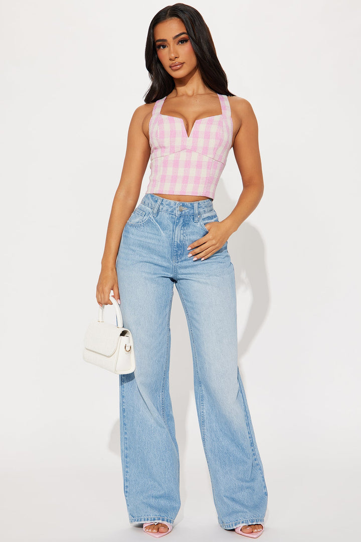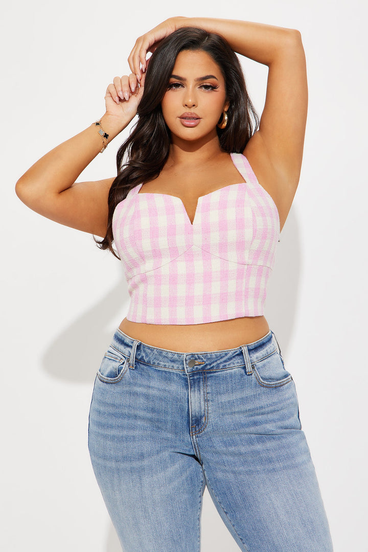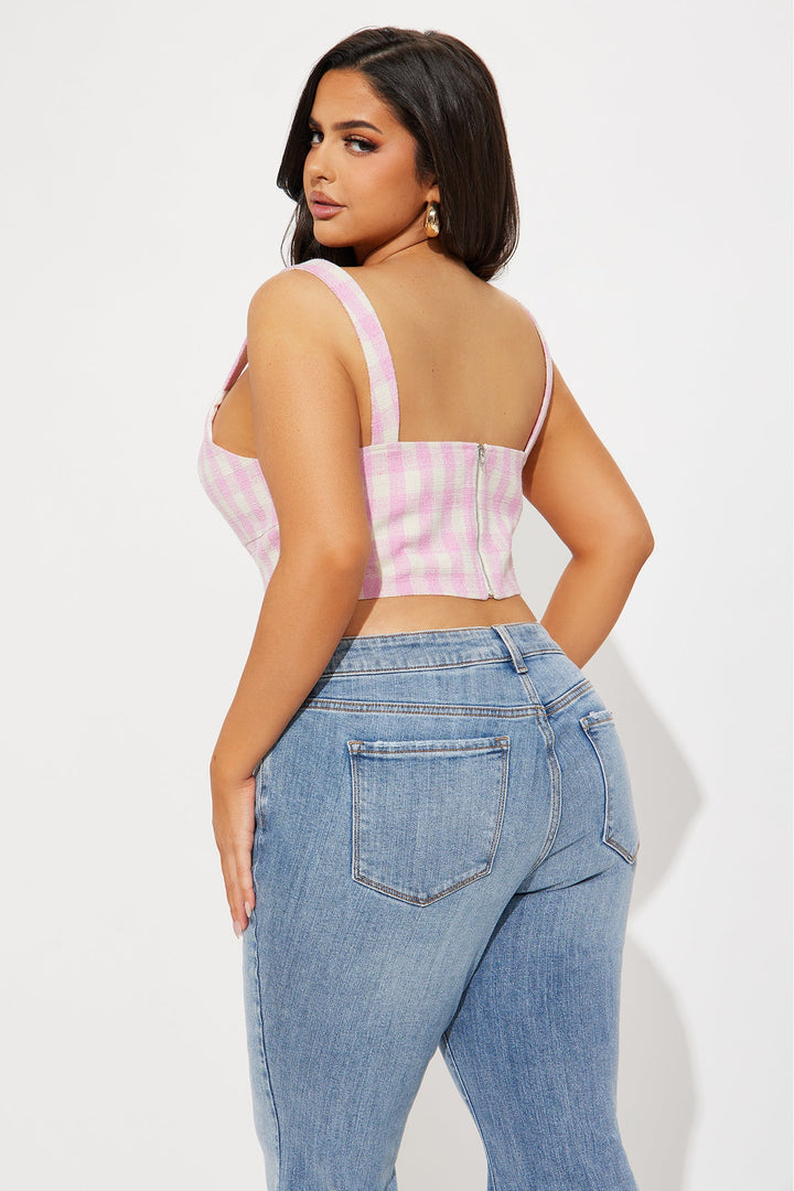 Available In Pink/combo. | Gingham Corset Top | Tweed | Non Stretch | V-Wire | Fully Lined | Shell: 100% Polyester | Lining: 95% Polyester 5% Spandex | Imported