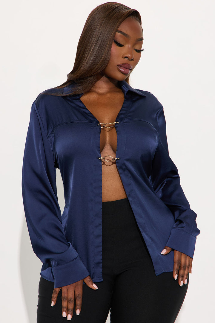 Available In Navy And White. | Satin Blouse | Hardware Closure | Non Stretch | Shell: 100% Polyester | Imported