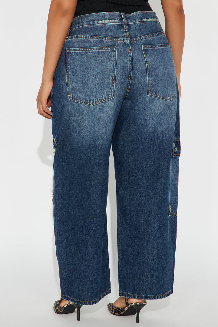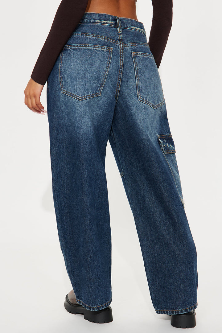 Gold Rush Loose Cargo Jeans - Dark Wash
