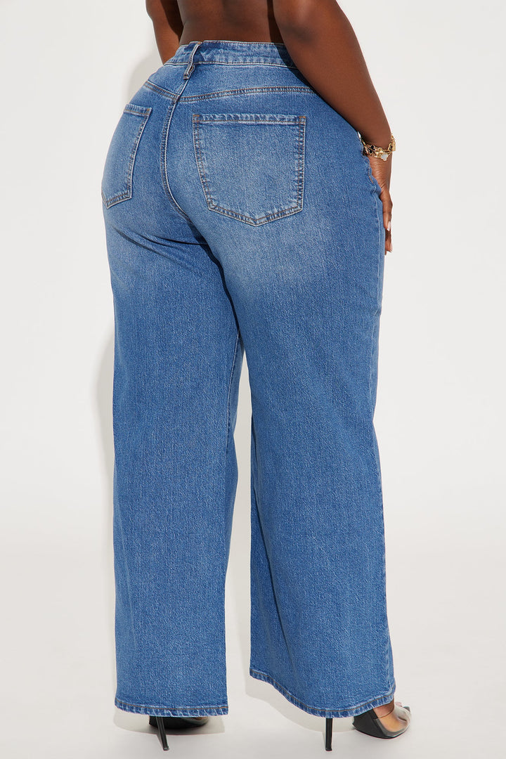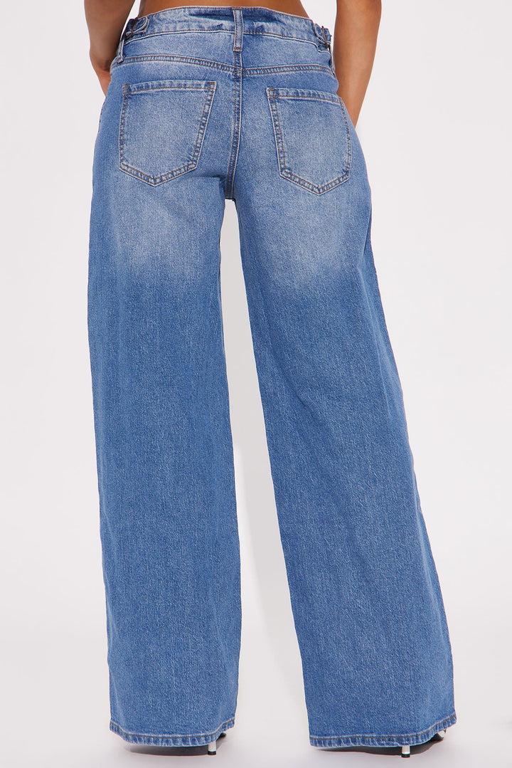 Goldie Waistband Tabs Wide Leg Jeans - Medium Wash