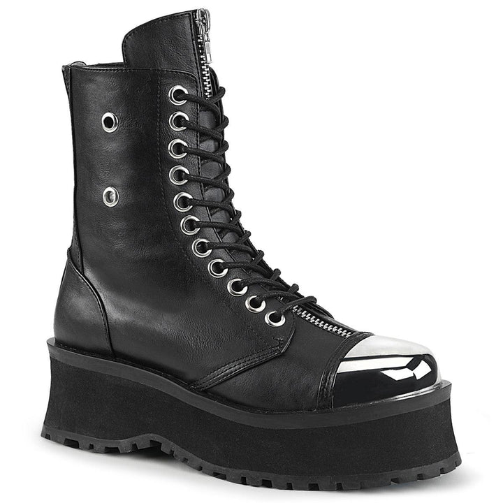 2 3/4"" (70mm) Platform Lace-Up Ankle Boot w/ Matte Black Metal Toe Cap & Zip Closure Details, Back Zip Closure