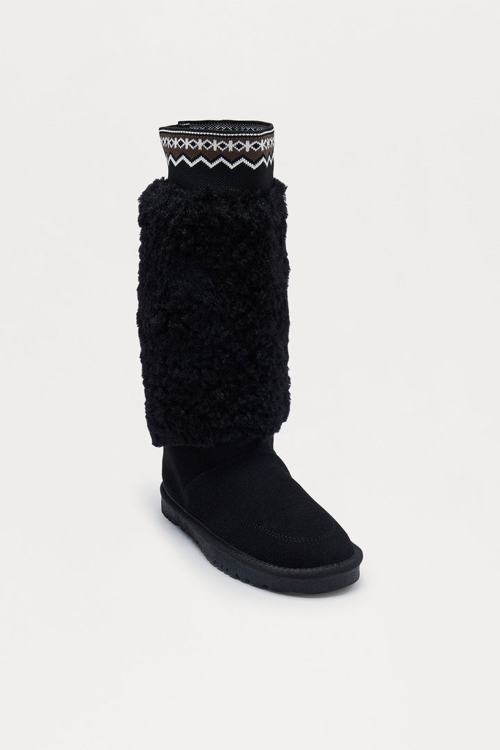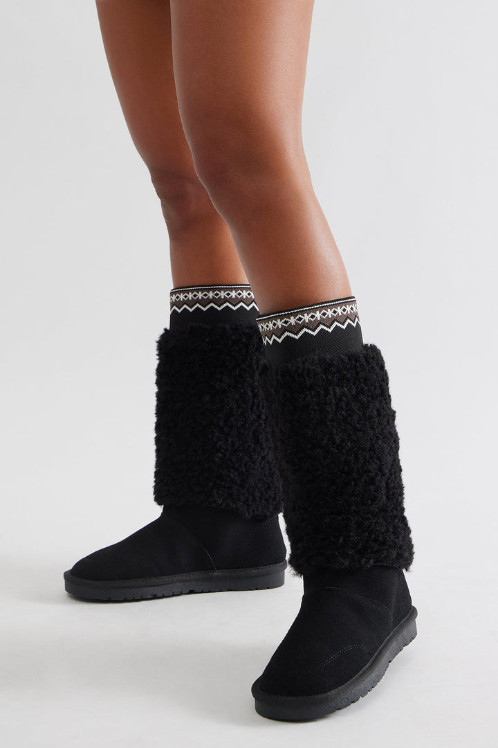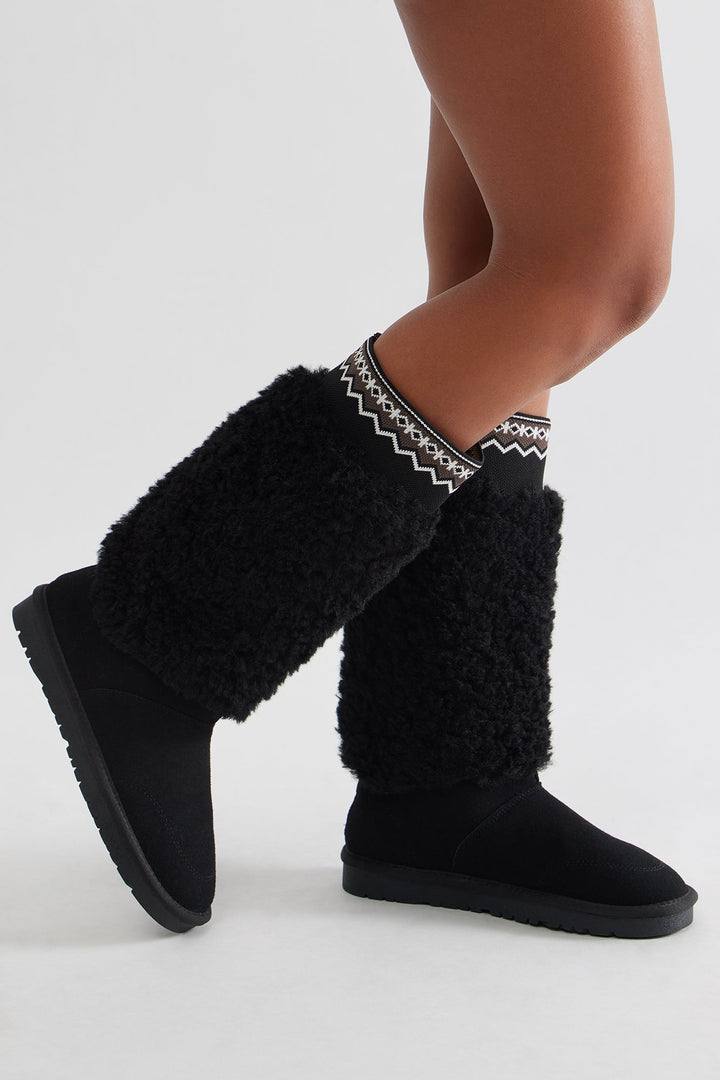 Available In Black And Taupe. | Flat Boots | Faux Fur | Round Toe | 2" Low Heel | Imported