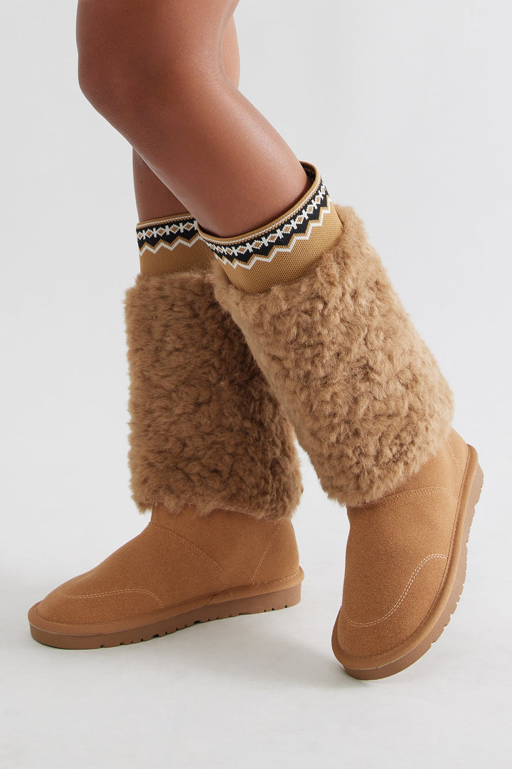 Available In Black And Taupe. | Flat Boots | Faux Fur | Round Toe | 2" Low Heel | Imported