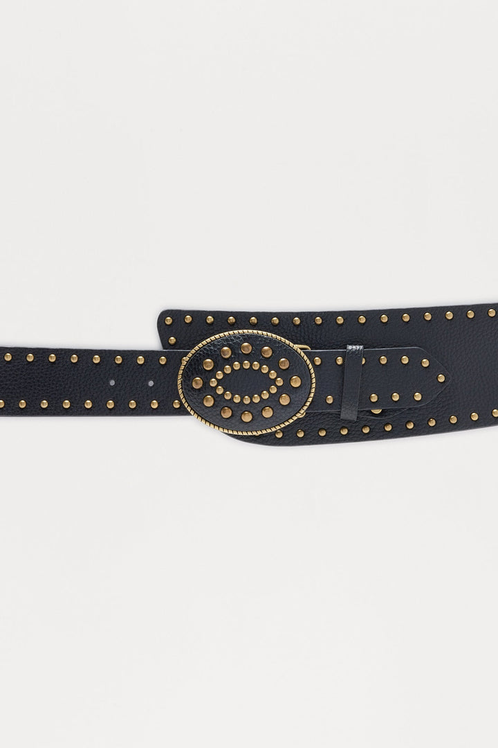 Available In Black/combo. | Wide Belt | Studded Detail | Faux Leather Material | Length: 40" | Self: 100% Polyurethane | Imported