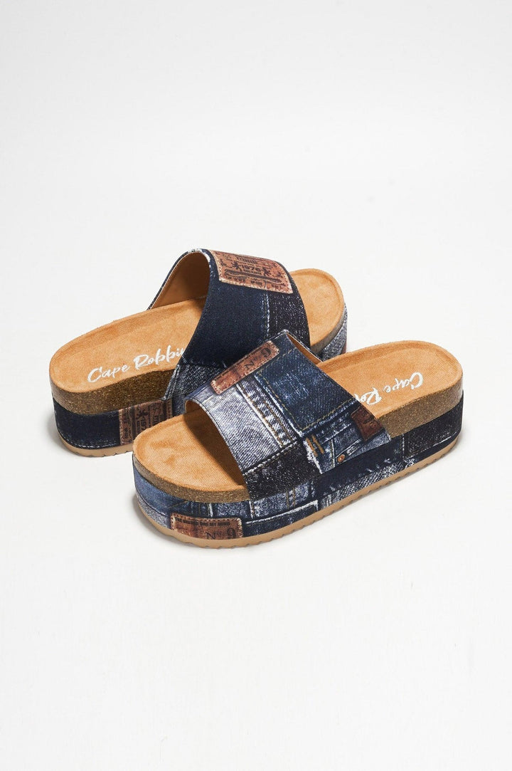 HACHA - DENIM - SANDALS by CAPE ROBBIN Open Round Toe Contoured Footbed Rubber Outsole Whether you're strolling along the beach,attending a garden party or enjoying a casual walk,the Hacha sandals will ensure you stand out with style. Choose between Denim or our natural Bohemia vibe raffia styles.