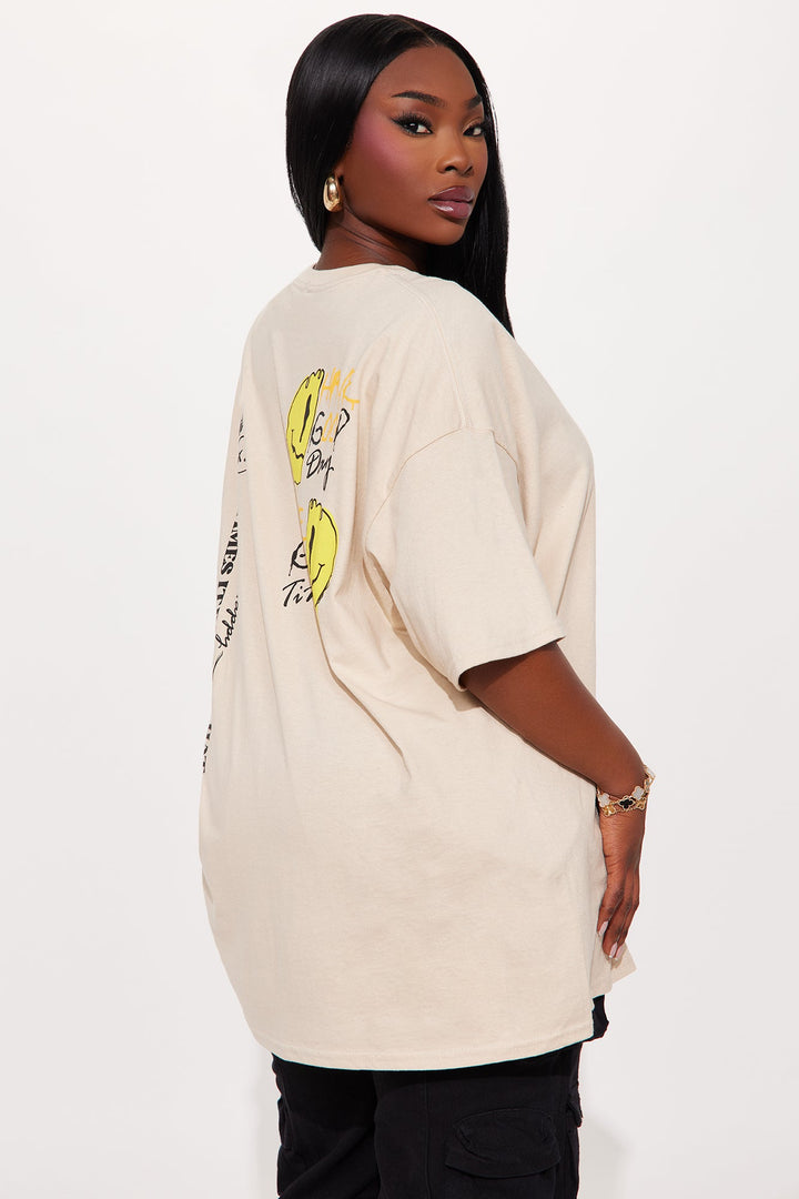 Available In Sand. | T Shirt | Crew Neck | Short Sleeve | Stretch | Front And Back Screen | Disclaimer: Due To Screen Printing Process A Difference In Saturation May Occur. Each Garment Is Unique. | 100% Cotton | Imported