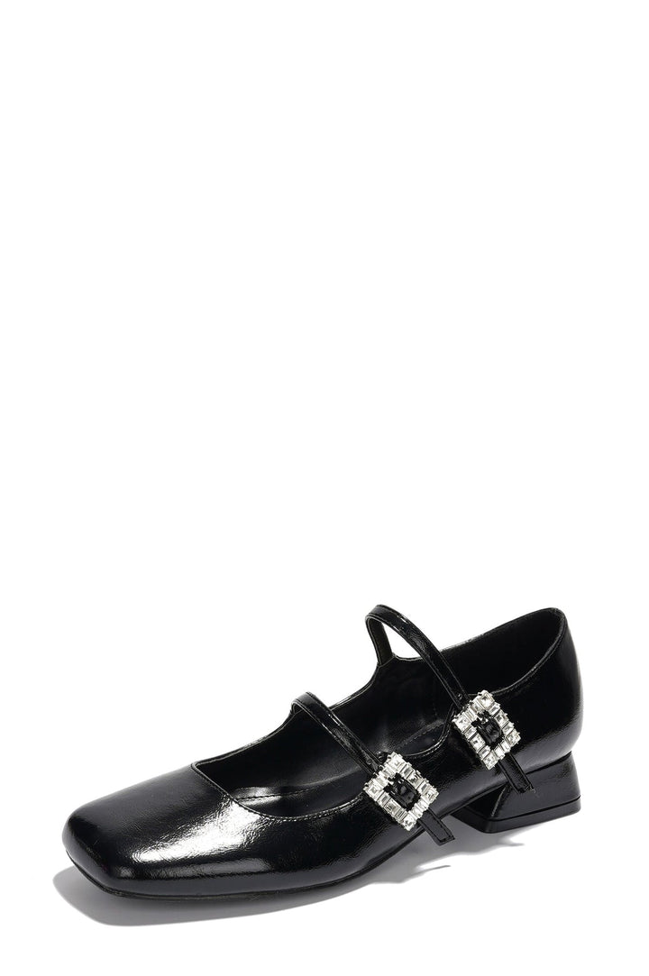 HARRI - BLACK - HEELS by CAPE ROBBIN Height: 1-inch Buckle closure Rhinestone buckle PU leather insole with memory foam for added comfort Square toe The Harri heels feature a classic Mary Jane silhouette with a modern twist, these shoes boast a luxurious metallic leather finish that shines with every step. The double buckle straps adorned with sparkling rhinestones add a touch of glamour. Add a touch of timeless elegance to your wardrobe with the Harri Mary Jane Shoes. Whether you're attending a special event, going to work, or simply stepping out in style, these shoes will ensure you do it with grace and sophistication.