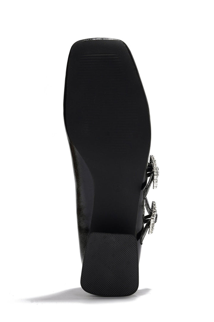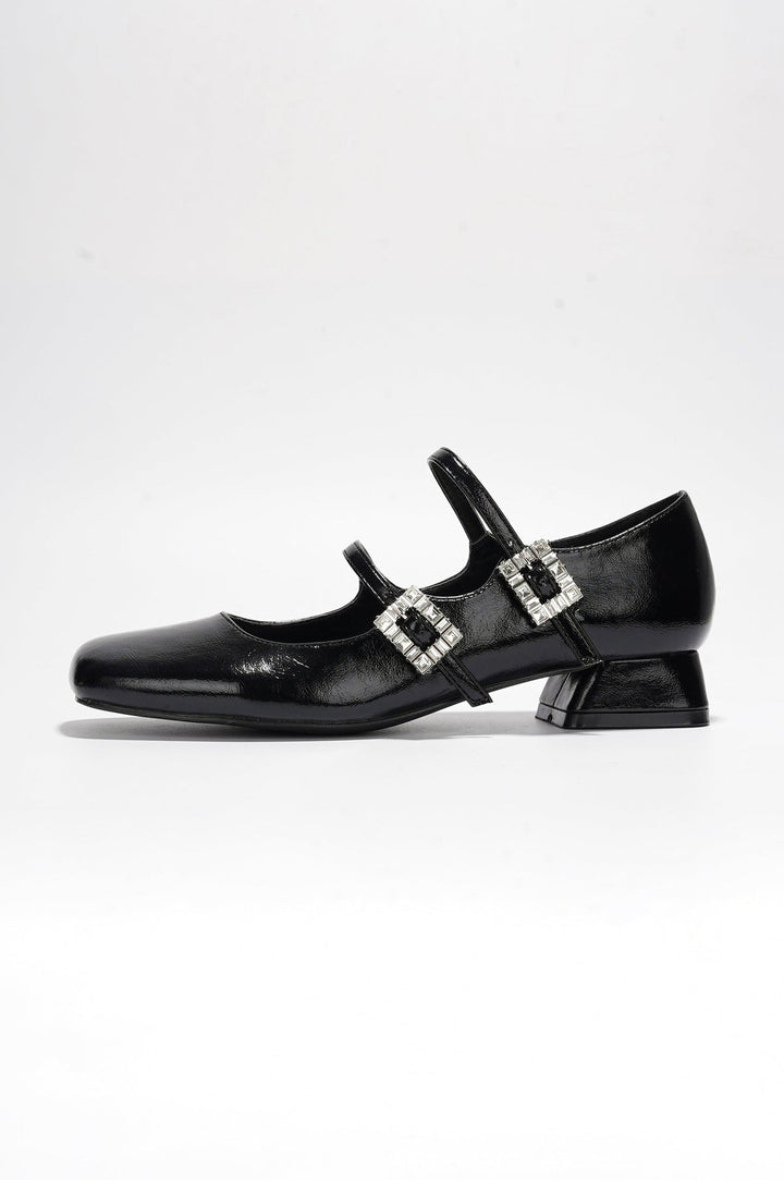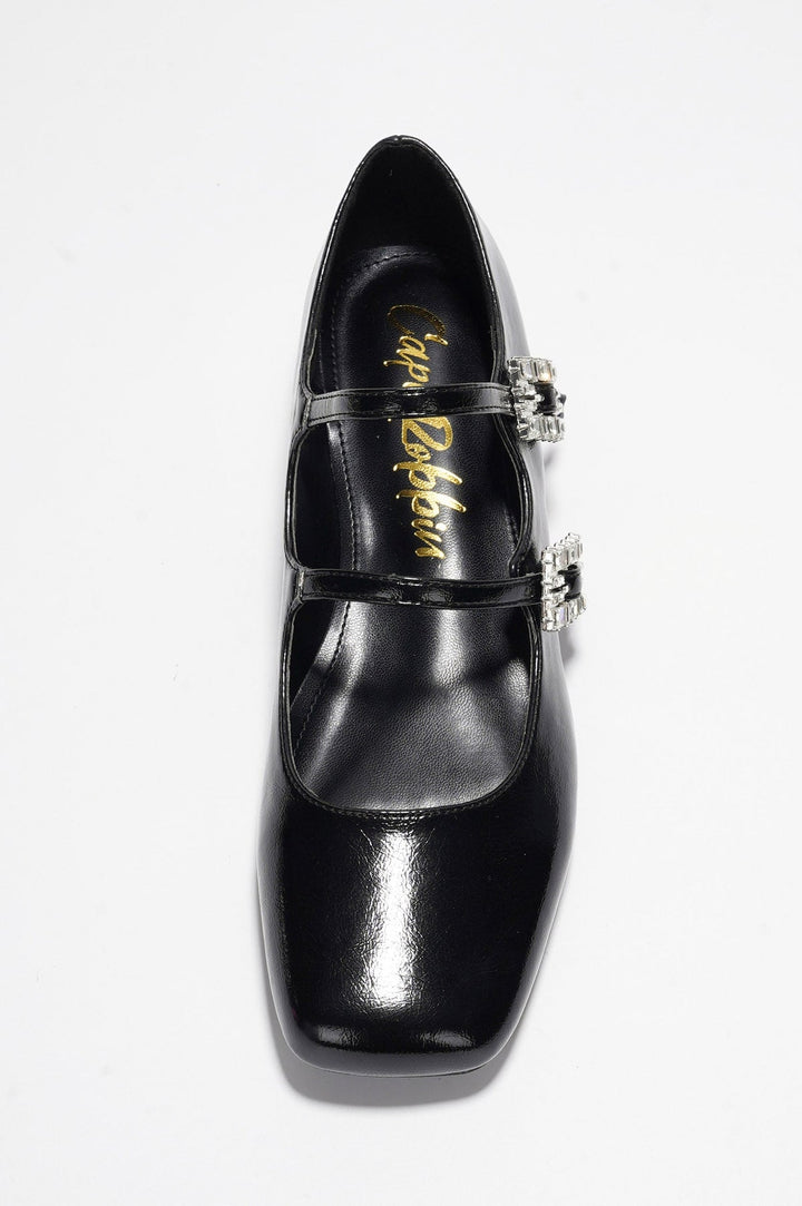 HARRI - BLACK - HEELS by CAPE ROBBIN Height: 1-inch Buckle closure Rhinestone buckle PU leather insole with memory foam for added comfort Square toe The Harri heels feature a classic Mary Jane silhouette with a modern twist, these shoes boast a luxurious metallic leather finish that shines with every step. The double buckle straps adorned with sparkling rhinestones add a touch of glamour. Add a touch of timeless elegance to your wardrobe with the Harri Mary Jane Shoes. Whether you're attending a special event, going to work, or simply stepping out in style, these shoes will ensure you do it with grace and sophistication.