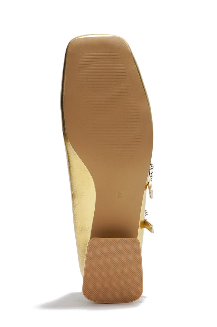 HARRI - GOLD - HEELS by CAPE ROBBIN Height: 1-inch Buckle closure Rhinestone buckle PU leather insole with memory foam for added comfort Square toe The Harri heels feature a classic Mary Jane silhouette with a modern twist, these shoes boast a luxurious metallic leather finish that shines with every step. The double buckle straps adorned with sparkling rhinestones add a touch of glamour. Add a touch of timeless elegance to your wardrobe with the Harri Mary Jane Shoes. Whether you're attending a special event, going to work, or simply stepping out in style, these shoes will ensure you do it with grace and sophistication.