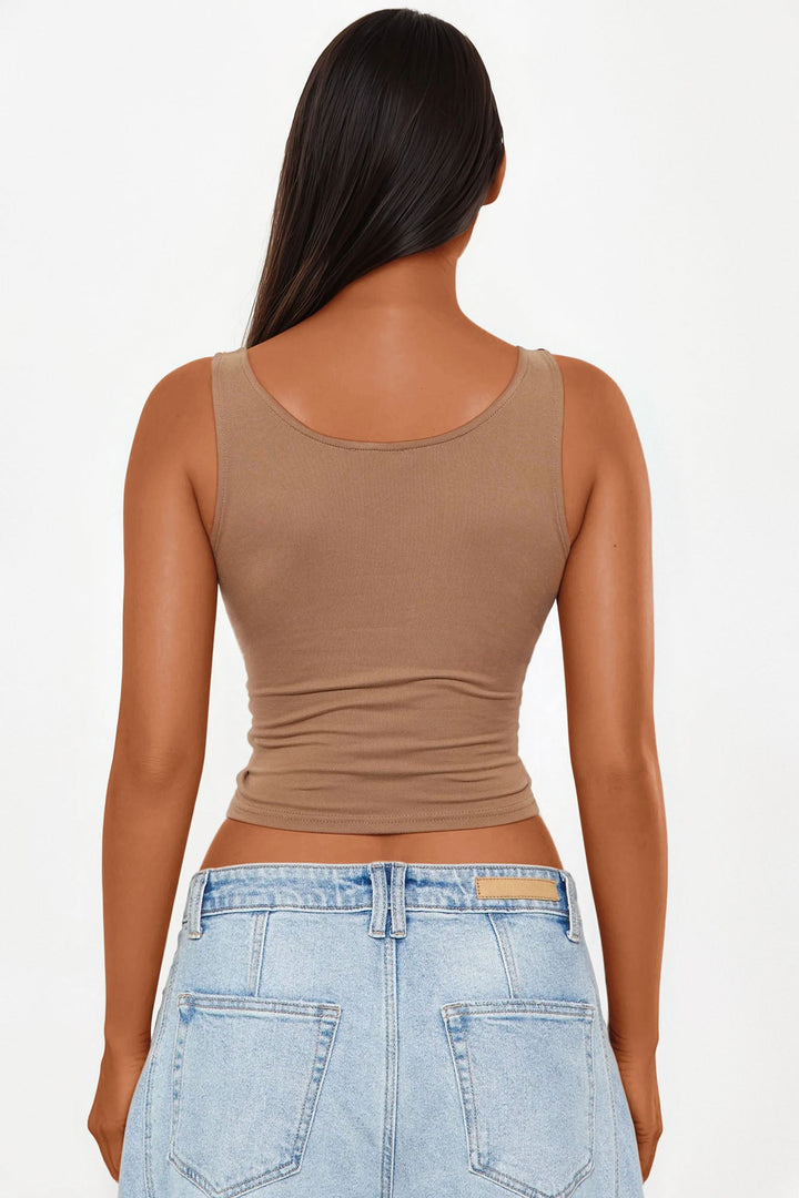Available In Black And Taupe. | Cut Out Top | Stretch | Sleeveless | Hardware | Ruched | Cropped | 95% Polyester 5% Spandex | Imported