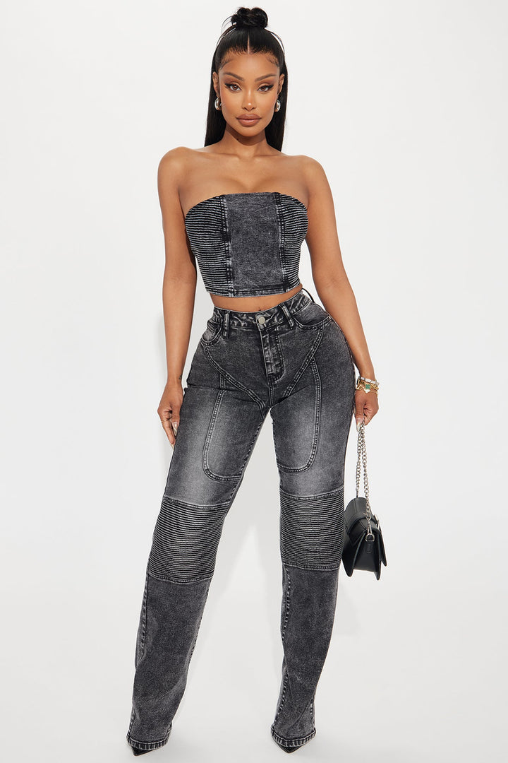 Available In Black Wash. | Pair With Have It My Way Strapless Moto Denim Top | 5 Pocket | Seaming | Moto Detail | 10.5" High Rise | 33.5" Inseam | High Stretch | 70% Cotton 25% Polyester 3% Viscose 2% Spandex | Imported
