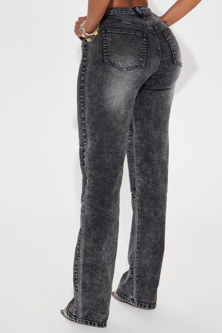 Have It My Way Moto Stretch Straight Leg Jeans - Black Wash