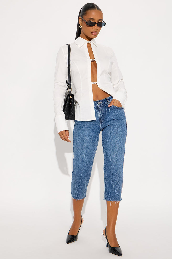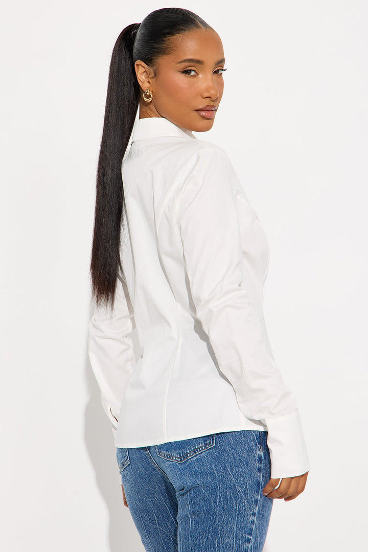 Available In White. | Poplin Blouse | Collared | Front Buckle Detail | 100% Cotton | Imported
