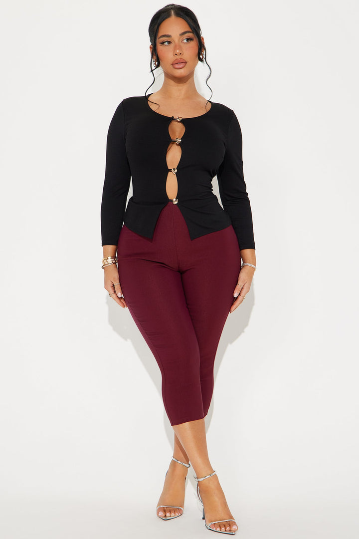 High Class Long Sleeve Cut Out Top - Black