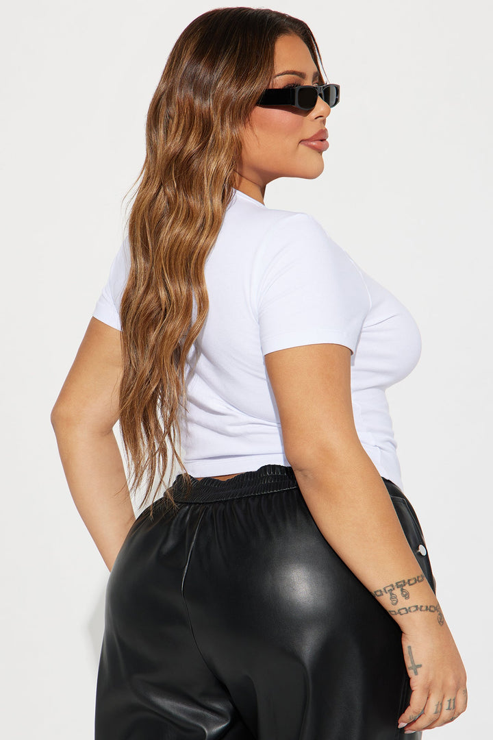 Available In White. | Crew Neck | Short Sleeve | Front Screen | Stretch | Disclaimer: Due To The Specialized Screen Printing Process A Difference In Saturation May Occur. Each Garment Is Unique. | 96% Cotton 4% Spandex | Imported