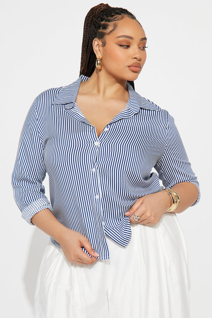 Available In Brown/combo And White/Blue. | Challis Shirt | Striped | Button Up | Non Stretch | 100% Rayon | Imported
