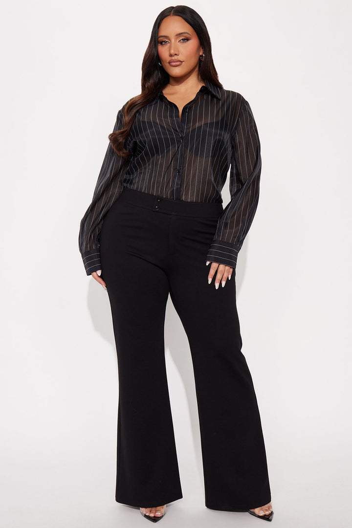 Available In Black/combo. | Organza Shirt | Pinstripe | Button Up | Sheer | Pair With "Hollie Pinstripe Organza Pants" | Non Stretch | 100% Polyester | Imported