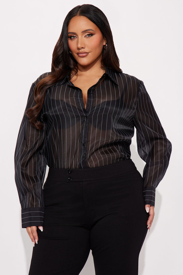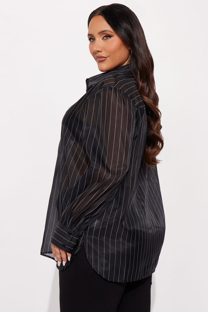 Hollie Pinstripe Sheer Organza Shirt - Black/combo