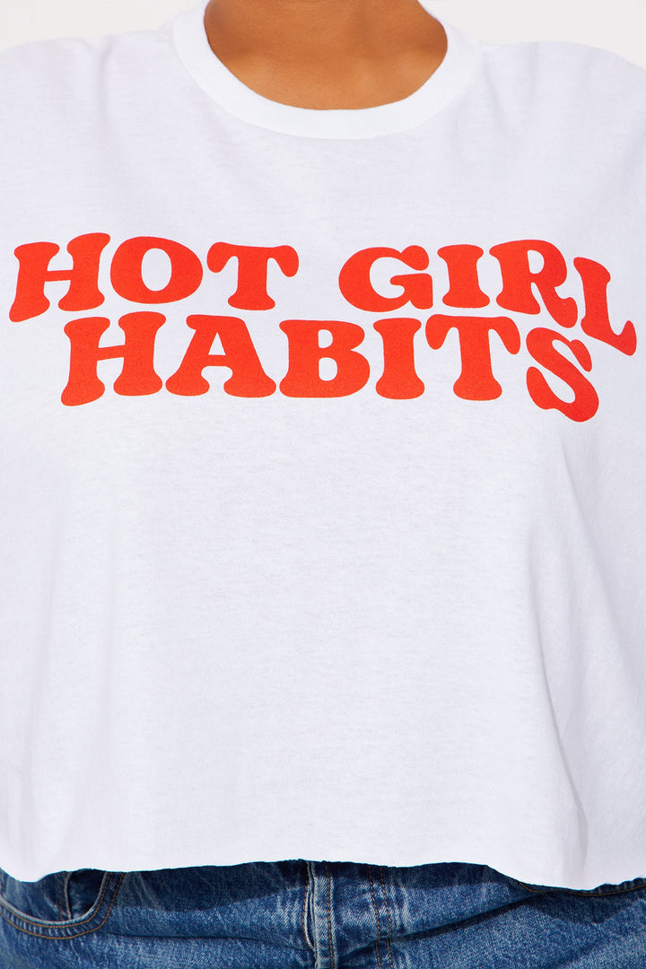 Hot Girl Habits Cropped Tee - White