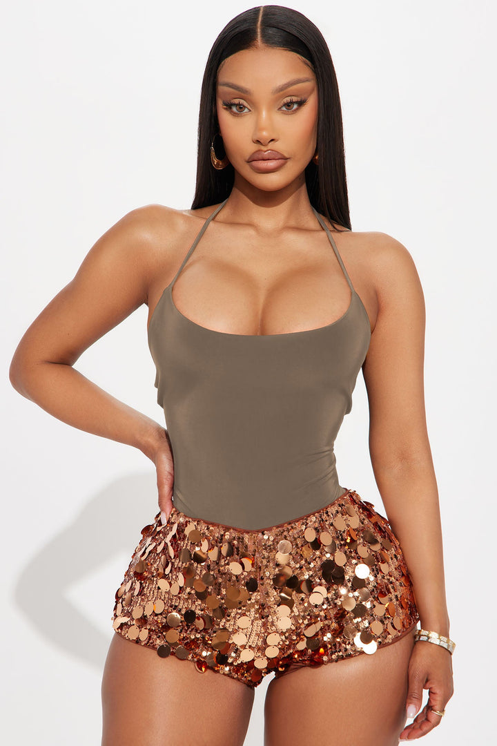 Hotspot Double Lined Backless Halter Bodysuit - Mocha